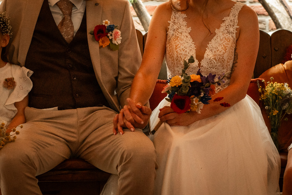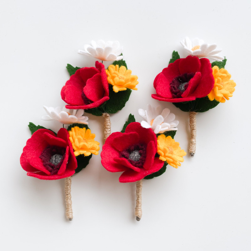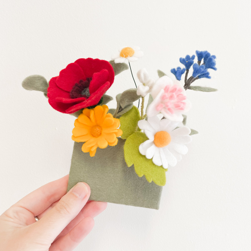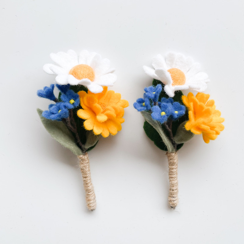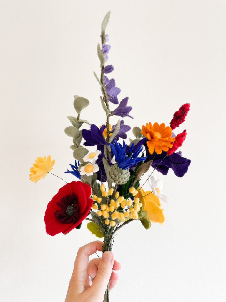 Het bruidsboeket werd een kleurrijke en vrolijke variatie aan Viltbloemen.
